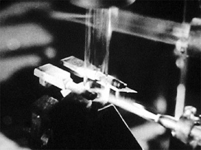 Testing pump tube joints for a perfect seal. The spark shows up a defective piece
