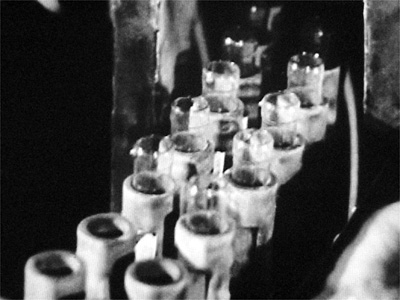 Glass was an important aspect of valve making and Mullard made their own glass tubes from raw materials. Glass is a super cooled liquid and is made from a mixture of oxides. Commercially, the main ingredient of glass is sand, or silicon dioxide. This is heated with sodium carbonate at an extremely high temperature. Also added to the mix is a proportion of broken glass known as Cullet.