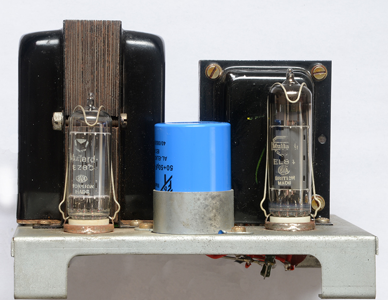 The construction uses an earth bus-bar and each component has been secured mechanically to its anchor point before soldering. This became clear when the main reservoir and smoothing capacitor was changed for a modern version. The heater wires are run together but are not twisted together, even so the hum level is very low.