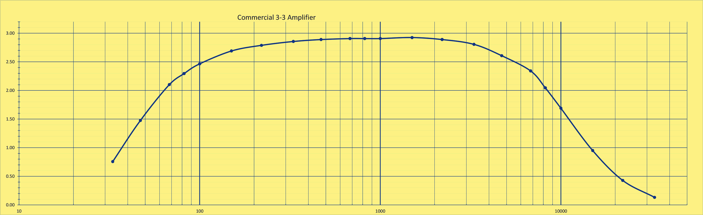 The final graph shows the response curve on a log-log graph. This presentation matches the shape of the graphs used originally by Mullard.