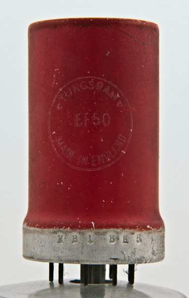 With the outbreak of war it was realized that the supply of EF50 valves would dry up and Mullard did not have the capability of manufacturing the special glass base with sealed-in pins. Consequently, just before Germany invaded Holland, a truck came from Holland with one million of these glass bases. Later, huge numbers of the valves were manufactured by Sylvania in the US.