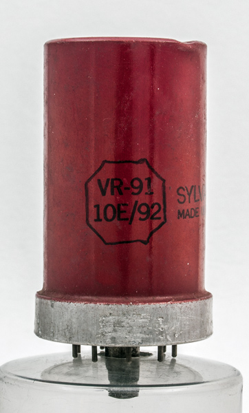 Elimination of the stem and pinch resulted in a considerable reduction in length of the internal wires. The valve had nine chromium-iron pins, which were sealed into the glass base and arranged uniformly around a central metallic spigot, which was keyed in order to facilitate insertion into the valveholder.