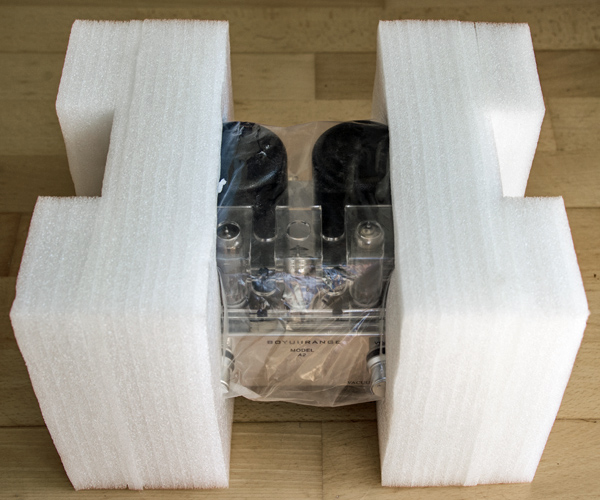 The protection afforded by the end cheeks had protected the amplifier perfectly. The end packing was removed and the amplifier was further dust proofed by a poly bag.