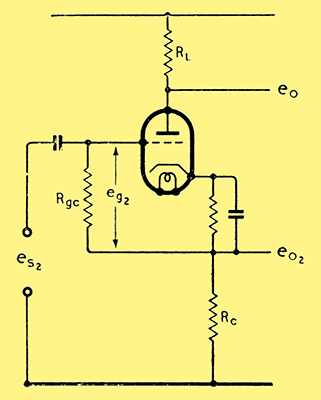 Suppose, however, it were possible to use the very high input impedance of a cathode-follower as the actual load on V1. Then, since this impedance is comparable with the AC resistance of the pentode, the amplification obtained would be greatly increased.