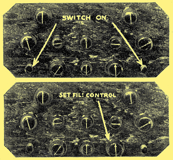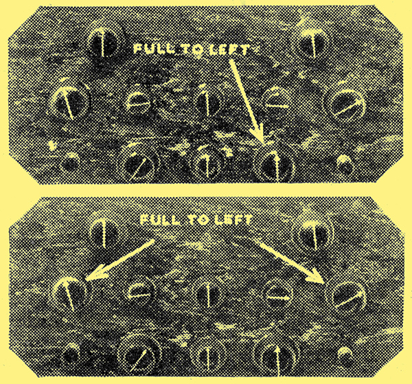 Turn the left-hand knob A hard to the left when it will be found, probably, that the left-hand thyratron will cease flashing. If it does not, turn the left-hand baseboard rheostat to the right until it does cease.