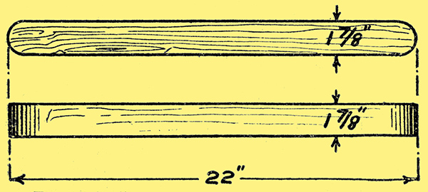 In the case of the top shelf, slightly wider and thicker wood is used than for the lower shelf, thus further strengthening the framework at the point where the corner supports are likely to buckle. These two pieces are 18½ in × 4 in × 1 in.