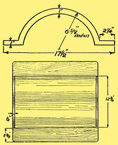 Until the arches are in position it is advisable not to remove the temporary pieces of wood referred to above; in any case the back piece should not be removed until the 18 in × 2 in × ⅝in strut is fitted between the two back corner supports and the brackets are in position.
