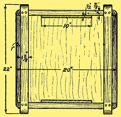 To the inner face of each piece of wood nail a strip centrally 10 in × 1½ in × 1 in, with one edge in each case flush with the bottom edge of the above four pieces.