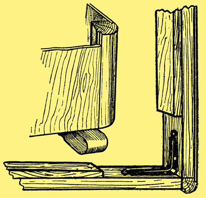 The four corner supports are out from 1 in × 1 in flush corner moulding - Handicrafts K343. Other suitable mouldings are available from the above manufacturers, including an octagonal corner moulding. Having out the four pieces to the correct length, they may new be fitted into the base framework already constructed. It is not necessary to screw those corner supports into position; 2 in oval nails are quite satisfactory.
