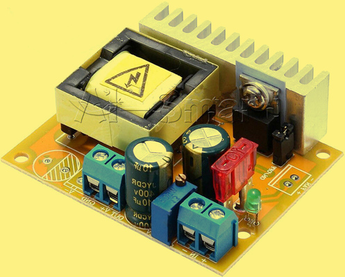 Output voltage is variable up to 350 Volts or so and our design requiring 255 Volts will not stress the capacitors. The operating frequency is given as 75 kHz. The module measures 60 x 50 x 20 mm.