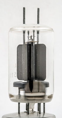 The European design of internal capacitors for neutralisation can be seen at the top of the valve. Such neutralisation prevented parasitic oscillations during operation in a well designed layout.