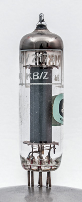 The anode end view.The thin glass tube envelope is 18 mm in diameter and, excluding the B7G base pins, is 62 mm tall.References: Data-sheet & 1040. |
