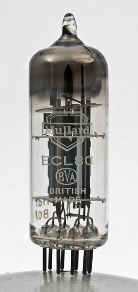 The ECL80 is a triode, output pentode for audio use. The heater at 6.3 Volts and 300 mA makes this valve suitable for equipment with mains transformers and heater chains across the domestic mains.