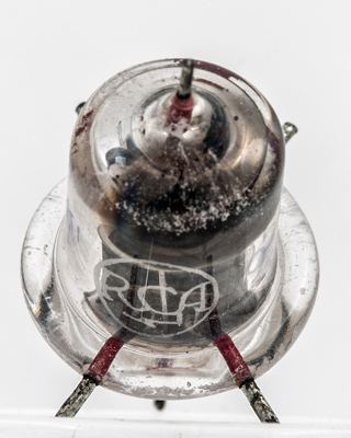 The RCA logo. Looking directly at the grids one can see all three wire grids.
