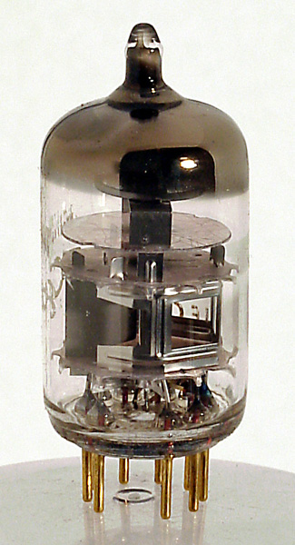 The PC88 is a UHF triode designed for grounded grid operation in the front end RF amplifier in Band IV and Band V television tuners. Mullard describe the PC88 as: a UHF frame-grid grounded grid amplifier triode. Miniwatt is a trade name of Philips and Mullard are the UK subsidiary of Philips.The construction is planar. The flattened cathode has a frame grid to one side only, beyond the grid is a square U channel anode with its flat end to the grid. The approach to a minimising the lead inductance is to use multiple pins for the grid connection. The relatively high anode current was employed to reduce noise.Mullard designed a UHF TV tuner around the PC88 operated as a grounded grid amplifier and a PC86 self oscillating mixer. These designs date from 1961.The thin glass tube envelope is 20 mm in diameter and, excluding the B9A base pins, is 47 mm tall.References: Data-sheet & 1040. Type PC88 was first introduced in 1962. See also 1962 adverts. |