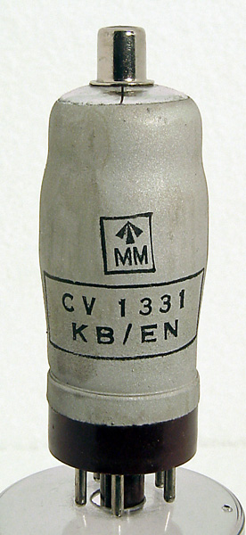 The CV1331 is a battery operated variable μ screened pentode. The most direct commercial type was the Mazda VP23 that was the prototype for the specification. It was used in many stages within portable radio receivers and transmitters.The KB/EN identifies this valve as being made to specification K1001 or K1006, the B denotes qualification by a UK authority and the EN identifies the maker as Thorn-AEI, Sunderland.The classic envelope is 32 mm in diameter and, excluding the MO base pins, is 81 mm tall.References: Data-sheet & 1043. Type CV1331 was first introduced in 1938. See also 1938 adverts. |