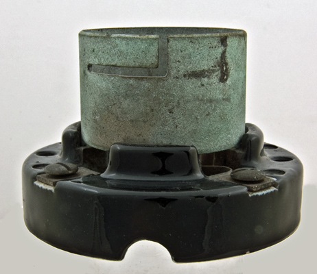 The base pins are set in a ceramic filling to the bottom of the valve. Note the side pin that locates in the skirt of the base unit.