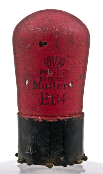 The EB4 is a pair of signal diodes in a single envelope. Each section is internally screened. The EB34 from 1941 is almost identical but has slightly higher inter-electrode capacitances. The EB4 was designed for signal detection.