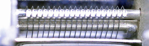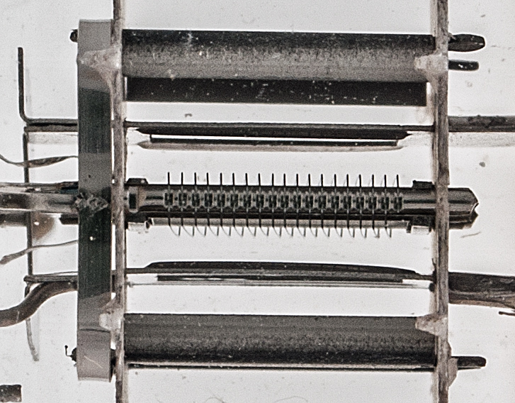 Actual pixels from the DF. The depth of field is very small but on the left the grid winding is visible both on the support and part way across the face of the cathode.