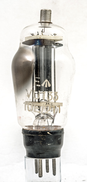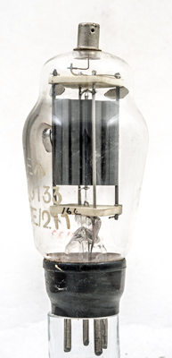 The VU133 is a high voltage half wave rectifier. It is unusual in that it has two anode cavities connected in parallel to the top cap. This design feature is a characteristic of the Ediswan-Mazda factory.The high voltage characteristic is denoted by the internal ceramic insulators.In keeping with similar HV rectifiers for pulse transmitter service the characteristics include a maximum peak anode current, in this case 400 mA. The maximum working Peak Inverse Voltage is 6,500 Volts with an off load PIV of 7,000 Volts. This rectifier requires a total series equivalent resistance of 850 Ohms and the reservoir capacitor should not exceed 1 μF.For late 1930s equipment a 1 μF capacitor working at around 3,000 Volts would be a significant device in its own right. A 600 Volt 2 μF paper capacitor I once had, was in a grey/green can about 60 x 30 x 60 mm. To obtain the equivalent of 1 μF at 3,000 volts with a safety margin would take a bank of 18. Six series sets of three in parallel. Plus resistors to equalise the voltages.