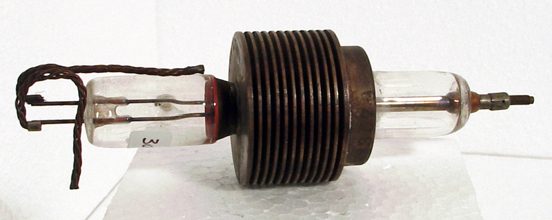 The VT90 radar power triode was designed for 300 MHz (100 cm) operation in pulse mode. The VT90 was the original 'micropup' from M-OV that made airborne Radar a practical proposition.It was developed from the DET12 first as a co-axial version of the original valve with a Type designation of E1029 and later as the E1046 or VT90 that produced pulses with a 5 kW peak power.See NT58 for the service version of the DET12.The construction is co-axial and the anode is finned to enable forced air cooling. The grid is connected to the pin at the right in the picture. The filament connects at the left and the finned anode is seen at the centre.These valves that were developed for military applications prior to the outbreak of war had no commercial use or Type designation. Thus VT90 is transmitting valve 90 for the UK air-force the RAF.The UK navy used M-OV 'micropups' in their type 284 fire control radar that operated at 600 MHz.The VT90 was used in the AMES11 and AI radars.Part of the same series of valves was the CV55 (E1190) that produced pulses of 40 kW peak at 1,200 MHz.The ACT19 is one of the few valves of this type that did get a commercial Type designation and it too was a forced air cooled pulse triode.The CV15 is a smaller version of the VT90 with conduction cooling.The valve is 40 mm in diameter and, excluding the base pins, is 111 mm long.References: 1005 & R J Sutherland Type VT90 was first introduced in 1939. See also 1939 adverts. |