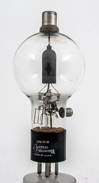 The valve is marked JAN808, the JAN being a US Government quality code. The 808 had been discontinued by 1960 in favour of the 812A. The best date of introduction is 1938 but it was probably earlier.