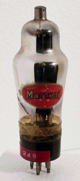 Type VMS4B typifies the swansong of the screen-grid receiving valve with anode top cap. It is an improved, vari-mu RF/IF tetrode intended for domestic superhet receivers but it represents the final milestone on the road which started (barely 10 years earlier) with the Type S625.From this point on the screen-grid type was superseded by kinkless tetrode or pentode types based on American prototypes and with grid top caps.The main advantage of the pentode or kinkless tetrode in comparison with the simpler screen-grid type was the much larger undistorted output signal handling capacity, not limited by the characteristic screen-grid kink.This meant that kinkless valves could easily handle IF signal levels of 40 V or more without objectionable intermodulation distortion. An IF signal level of 40 V may sound excessive but it can be needed if, say, -40 V of AGC bias has to be generated in the detector stage in order to suppress an over-loud local transmitter.The number of equivalents suggests that this was a popular valve in its day.The classic envelope is 42 mm in diameter and, excluding the B5 base pins, is 120 mm tall.References: Data-sheet & 1005 Type VMS4B was first introduced in 1933. See also 1933 adverts. |