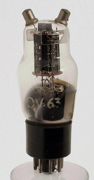 |  | The CV63 is distinct because of the twin top caps. One cap is for the anode and the other is for the grid. The prototype for the CV63 was the M-OV experimental Type E1323.It functions as a power oscillator and the ratings give peak values. It is specified to oscillate at 250 MHz - a very high figure for the time. Operation was in pulse mode.The classic envelope is 37 mm in diameter and, excluding the IO base pins, is 90 mm tall.References: Data-sheet. |