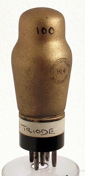 |  | The golden screened HL4 triode was designed for general purpose and audio amplifier applications. It is of medium impedance and could have been employed as the first audio stage after the detector in radio receivers.The classic envelope is 37 mm in diameter and, excluding the B5 base pins, is 87 mm tall.Reference: 1043. Type HL4 was first introduced in 1935. See also 1935  adverts. |