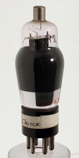|  | The CV2549 is a double diode triode. In radio receivers the audio and AGC detectors could share the same valve cathode as the first audio amplifier, hence the popularity of the multiple valve.The classic envelope is 36 mm in diameter and, excluding the UX6 base pins, is 98 mm tall.References: Data-sheet, 1040 & 1043. Type CV2549 was first introduced in 1936. See also 1936  adverts. |