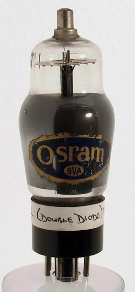 |  | The DL63 double diode triode by Osram would have been designed for receiver applications. Traditionally such a valve would provide signal and AGC rectification, followed by the first audio amplification.The classic envelope is 37 mm in diameter and, excluding the IO base pins, is 95 mm tall.References: 1040 & 1043. Type DL63 was first introduced in 1939. See also 1939  adverts. |