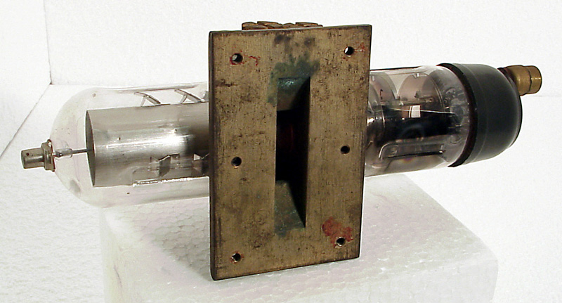 |  | The CV150 is a pulse operated klystron for transmitter use. At 3186 MHz it would produce pulses of 30 kW peak power. The output was coupled from the valve via the 54 x 82 mm waveguide flange.The wide glass tube envelope is 39 mm in diameter and, excluding the base pins, is 197 mm tall.Reference: Private communication |
