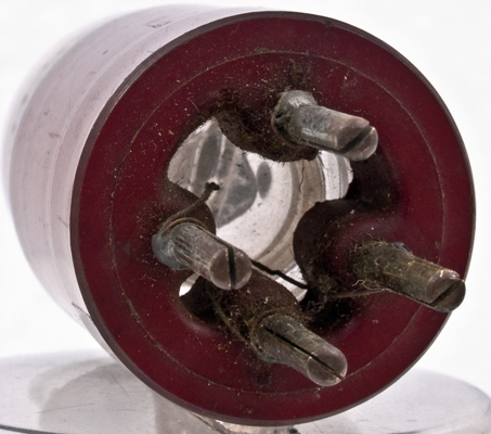 We have acquired another P1 with the Bakelite base. The shape of the moulding with the opening between the pins is characteristic of Cossor manufacture.