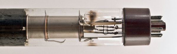 The neck and bulb of the tube are internally coated with colloidal graphite (Aquadag) to form the final anode.