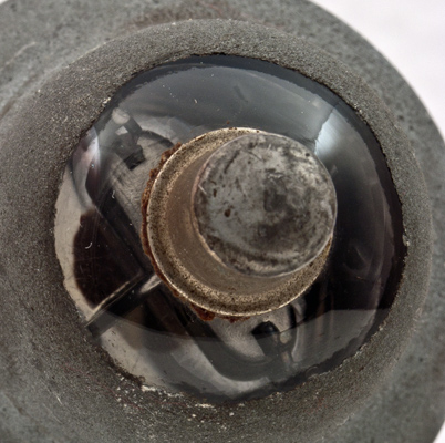The zinc paint covers the envelope and little more than the top mica is visible.The classic envelope is 44 mm in diameter, and excluding the B7 base pins is 118 mm tall.References: Data-sheet & 3002. |