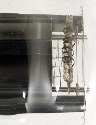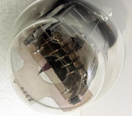 The end of the envelope shows the grid in the rectangular anode cavity.