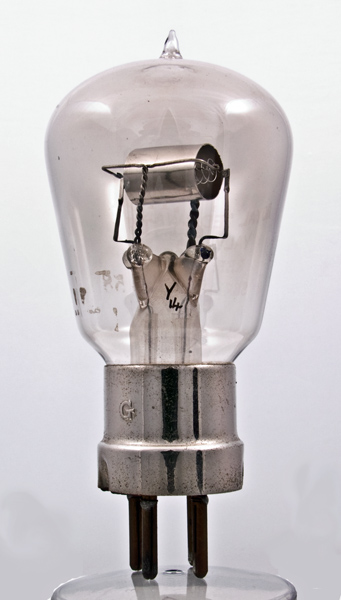 This is an early transmitting valve and is based on the R Type design. The valve electrodes are built on the Ediswan four point pinch seal and the bright metal base shell indicates an early production version of the design. Later versions employed Bakelite bases.