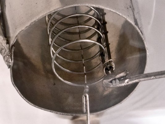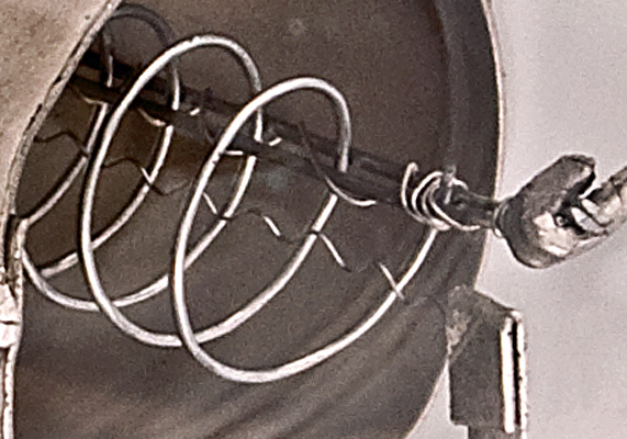 The grid within the anode cylinder is a helix but this example has a pronounced sag.