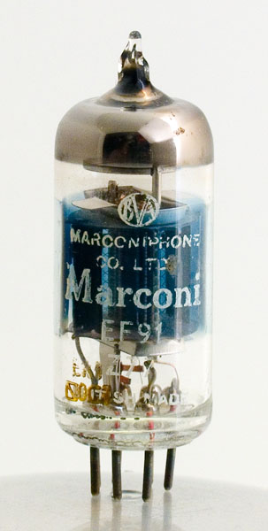 M-OV who made the Marconi Z77, acknowledged the fact that this valve was universally known by the Mullard designation of EF91 and gave the EF91 top billing on the envelope.The EF91 is a high gain, high impedance, high slope, screened pentode. Mullard describe the EF91 as primarily intended for use as RF amplifiers or mixer valves in television receivers. At the time, late 1940s, television only operated at VHF.It could be used from AF to VHF up to about 200 MHz.
