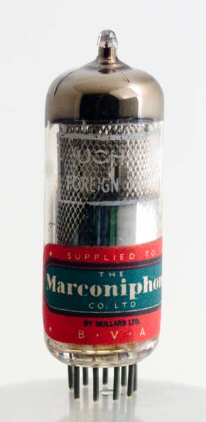 The UCH81 is a triode heptode frequency changer for use in AC/DC mains equipment. The heater is designed for use on 100 mA heater chains. This valve would be most likely found in domestic broadcast radio receivers.The thin glass tube envelope is 20 mm in diameter and, excluding the B9A base pins, is 57 mm tall.References: Data-sheet & 1040. Type UCH81 was first introduced in 1953. See also 1953 adverts. |