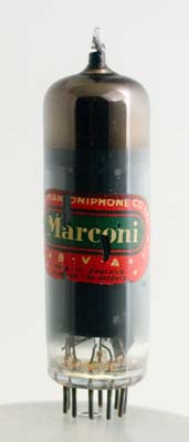 The Marconi label is a brand name of the M-OV company.The thin glass tube envelope is 20 mm in diameter, and excluding the B9A base pins, is 68 mm tall.References: Data-sheet & 1040. Type N309 was first introduced in 1953. See also 1953 adverts. |