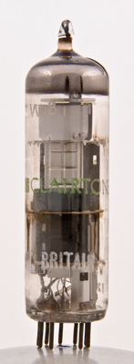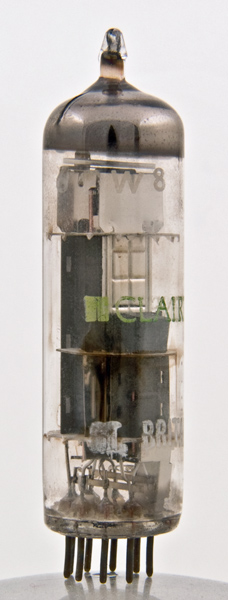 The 6GW8 was one of the last audio triode output pentode valves designed. Uses were in domestic radio and audio equipment. Normally in single ended output stages for radiograms and tape recorders. The design proved popular in low cost stereo systems and was made by several companies, this exhibit being labeled Clairtone.