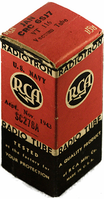 This image of the original RCA box was supplied by Stig Comstedt.The thin metal tube envelope is 25 mm in diameter and excluding the IO base pins, is 50 mm tall.References: Data-sheet, 1040 & 1043. Type VT-116 was first introduced in 1938. See also 1938 adverts. |