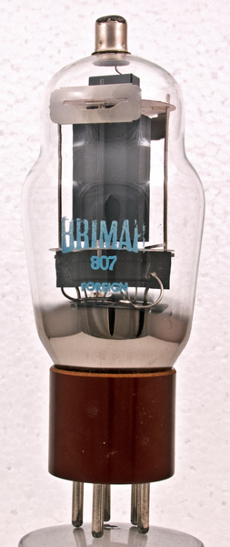 The classic 807 beam tetrode valve is unusual in still being designated as current production in the 1960s and having a five pin base. The 807 was normally run hard and different makes of 807 held up better than others.The parameters given are for single ended use. When used in a class AB1 as a push pull pair with 600 volts on the anode an output power of 65 Watts was normal.
