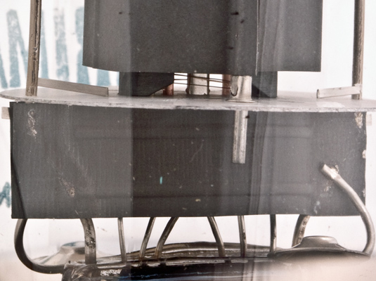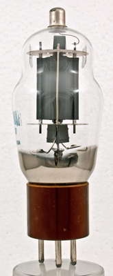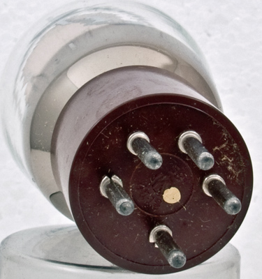 The lower screen and the base of the electrodes.The classic envelope is 51 mm in diameter, and excluding the UX5 base pins is 124 mm tall.References: Data-sheet & 1040. Type 807 was first introduced in 1938. See also 1938 adverts. |