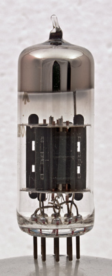 The thin glass tube envelope is 20 mm in diameter and, excluding the B9A base pins, is 58 mm tall.
