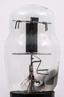 The triode sections seen end on. The getter holder is on the lower right of the image.