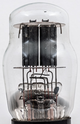The triode sections side by side with the extended anodes facing the outside.