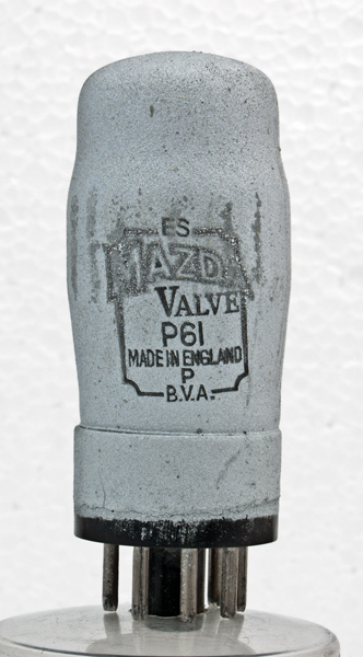 The reverse is plain zinc paint.The classic envelope is 32 mm in diameter, and excluding the MO base pins is 70 mm tall.References: Data-sheet & 1043. Type P61 was first introduced in 1941. See also 1941 adverts. |