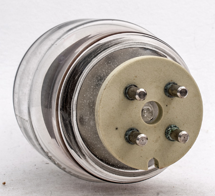 The wide glass tube envelope is 76 mm in diameter, and excluding the B4A base pins is 137 mm tall.
